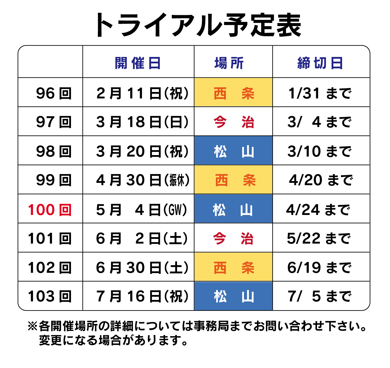 松山の100回記念トライアルではもしかすると、いつもとは違う内容になるかもしれません。