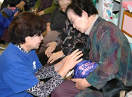 | k9Japanでは動物介在活動としてセラピードッグを施設、グループホーム、学校等に派遣しています。派遣される犬は性格テストなどの適性検査、衛生面の検査、獣医師による健康検査、また、同行するオーナーの適性などを審査し認定試験に合格した犬が参加しています。 |